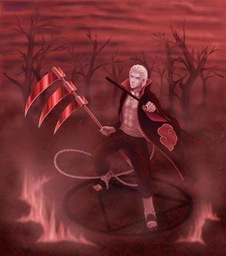 este un membru al akatsuki si coleg de echipa cu kazuku.EL este nemuritor si reuseste sa il omoare pe asuma insa in cele din urma este infrant si omorat de shikamaru si lasat sa putrezeasca intr-o groapa imprastiat in bucati